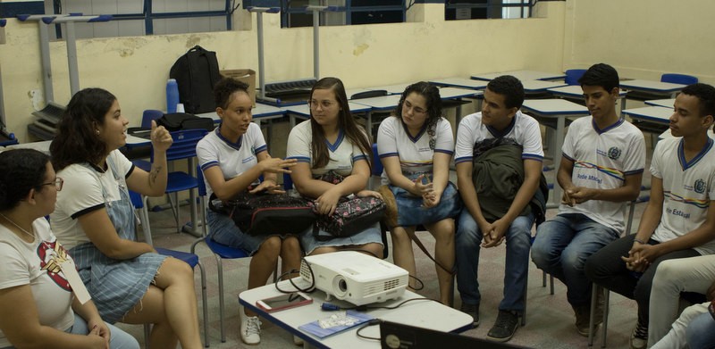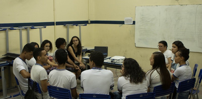 Uma das oficinas que despertou mais interesse dos estudantes da escola foi sobre Expressão Corporal, oferecida pela professora Milena Travassos, e, pela estudante de Cinema e Audiovisual, Ivadirê Zidanes. A atividade propiciou aos participantes o autoconhecimento e uma forma de pensar no corpo em relação aos relacionamentos. “Serve para entender até que ponto o outro pode conhecer o meu corpo”, disse Ivadirê.